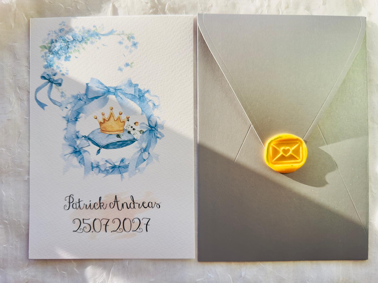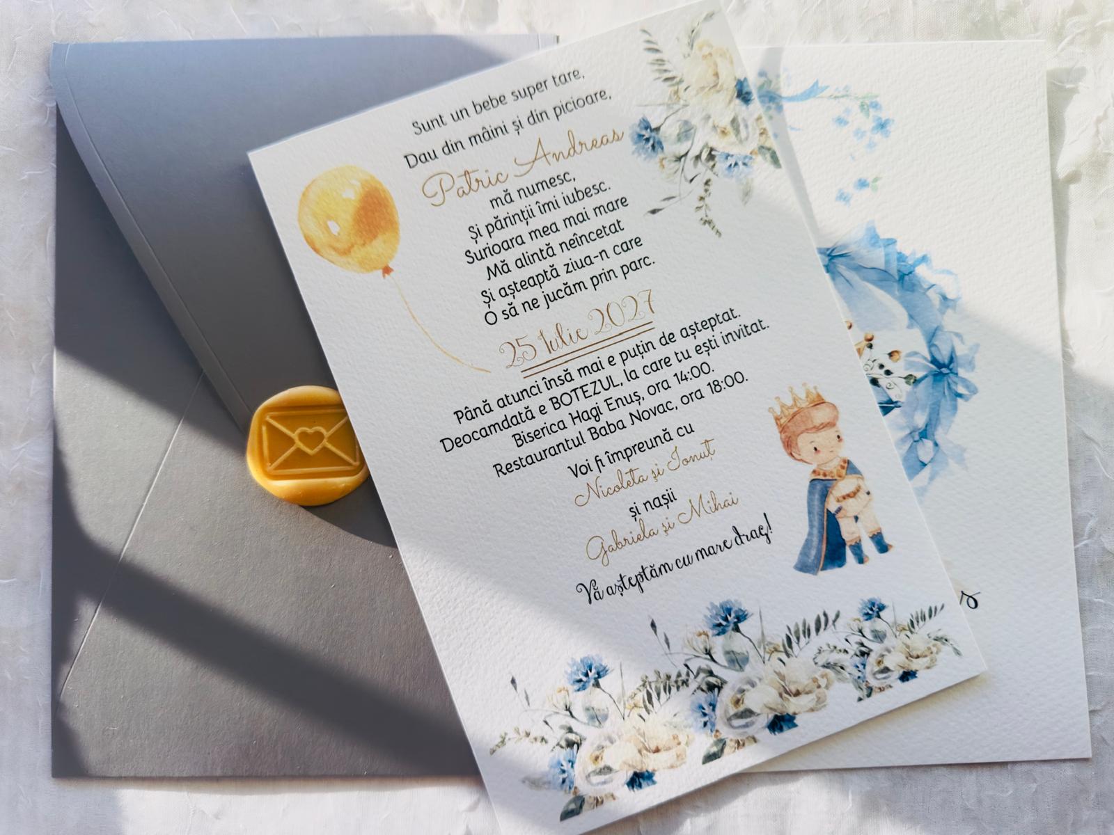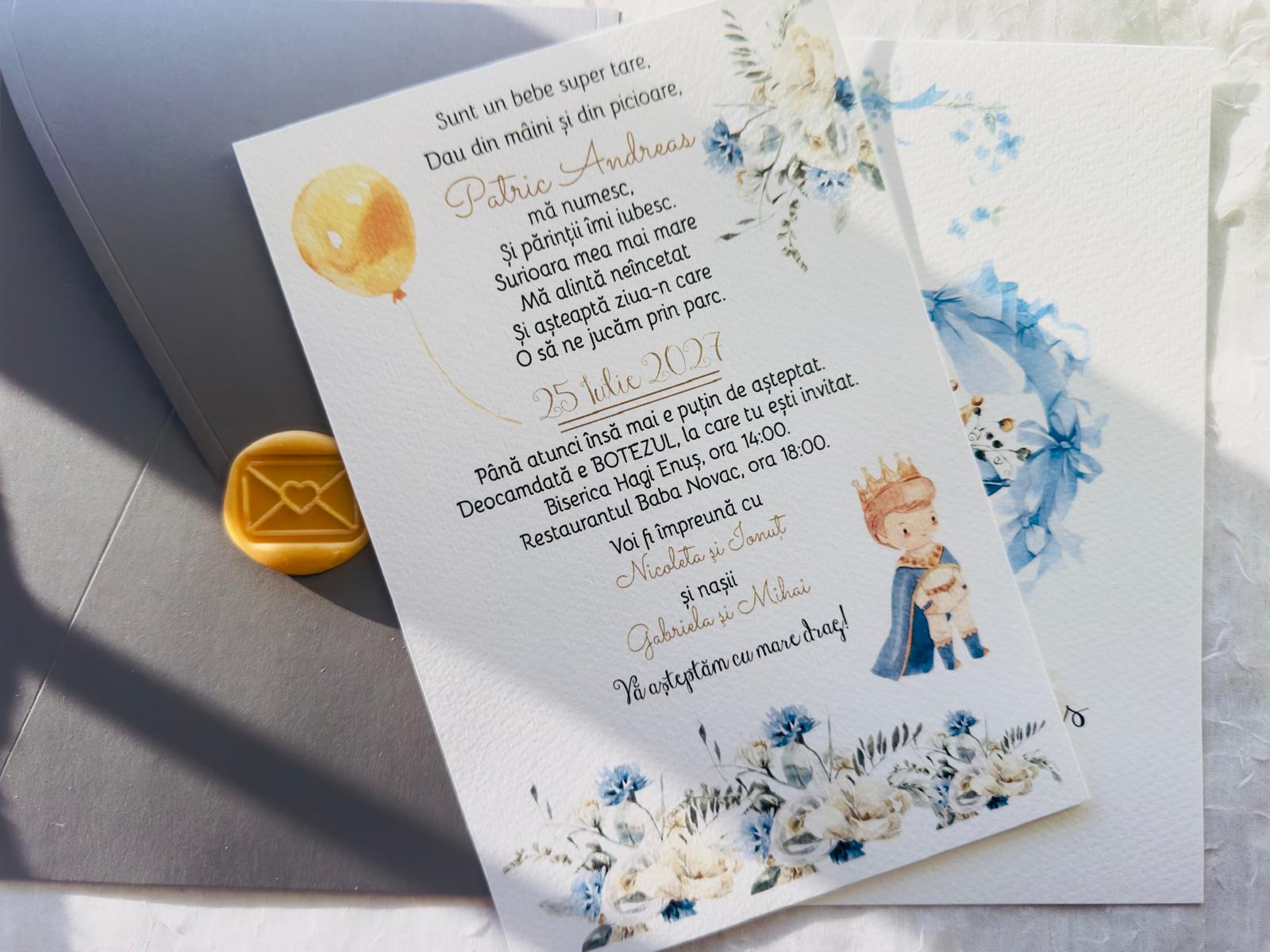 Invitații de botez cu sigiliu – elegante, personalizabile și pline de rafinament.